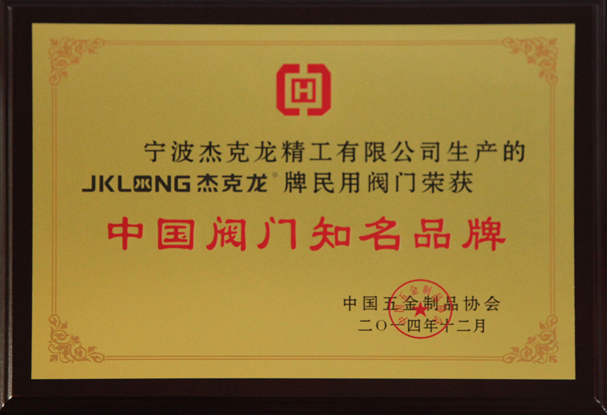 中國閥門知名品牌證書
